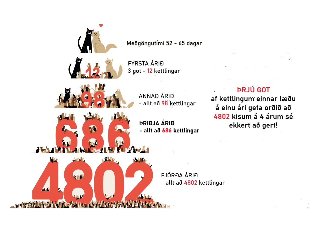 Hver læða getur gotið oft og jafnvel þrisvar sinnum á ári og eitt fress getur frjóvgað margar læður á degi hverjum. Þessi blákalda staðreynd leiðir einfaldlega til offjölgunar katta; katta sem getur reynzt þrautinni þyngri að finna heimili og tryggja líf.